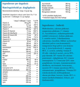 1 målebæger (12g) dagligt i et glas vand eller juice sammen med måltid.